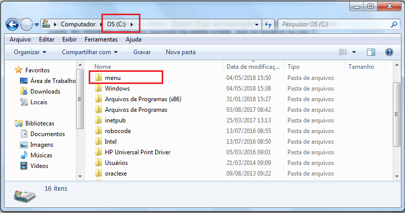 Todos os scripts, incluindo o menu, devem ficar armazenados dentro de uma mesma pasta. No Windows, criei meu exemplo na pasta scripts, que se localiza na raiz C: