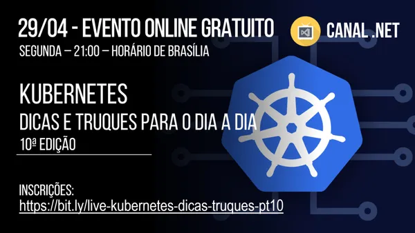 Acompanhe este novo evento ONLINE e GRATUITO no Canal .NET e fique por dentro de diversas dicas e truques extremamente úteis no dia a dia com Kubernetes, ferramentas auxiliares e integração com serviços em nuvem (incluindo o suporte ao AKS – Azure Kubernetes Service) !